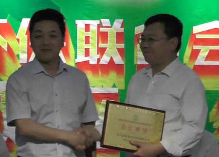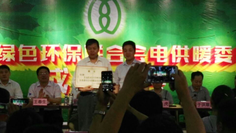邯鄲市綠色環(huán)保聯(lián)合會會長田尚宏向邯鄲市綠色環(huán)保聯(lián)合會電供暖委員會會長馬建崗頒牌。