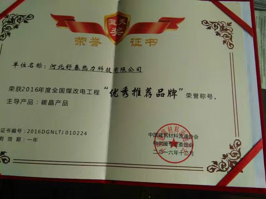 河北舒春碳晶榮獲藍(lán)天獎(jiǎng) ![]()
